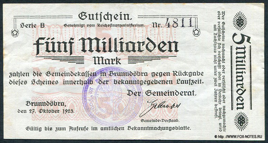В7:637.b   5 млрд. марок27. Oktober 1923. Serie B. АВЕРС РЕВЕРС