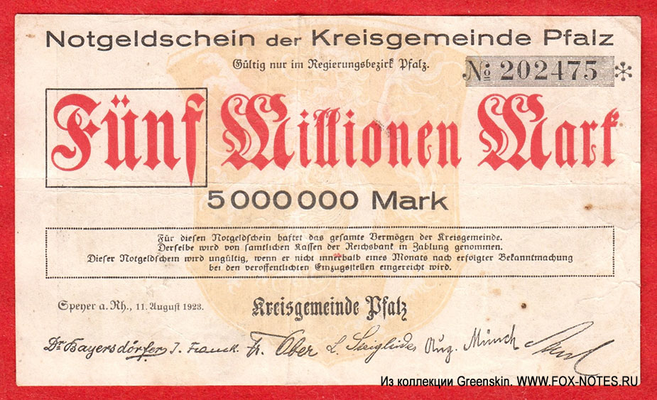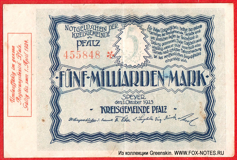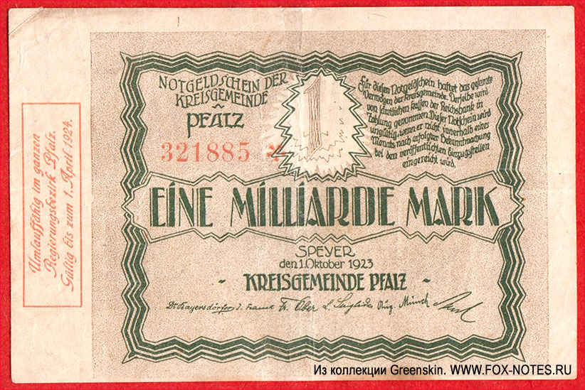 Notgeld der Kreisgemeinde Pfalz. 1923 |
