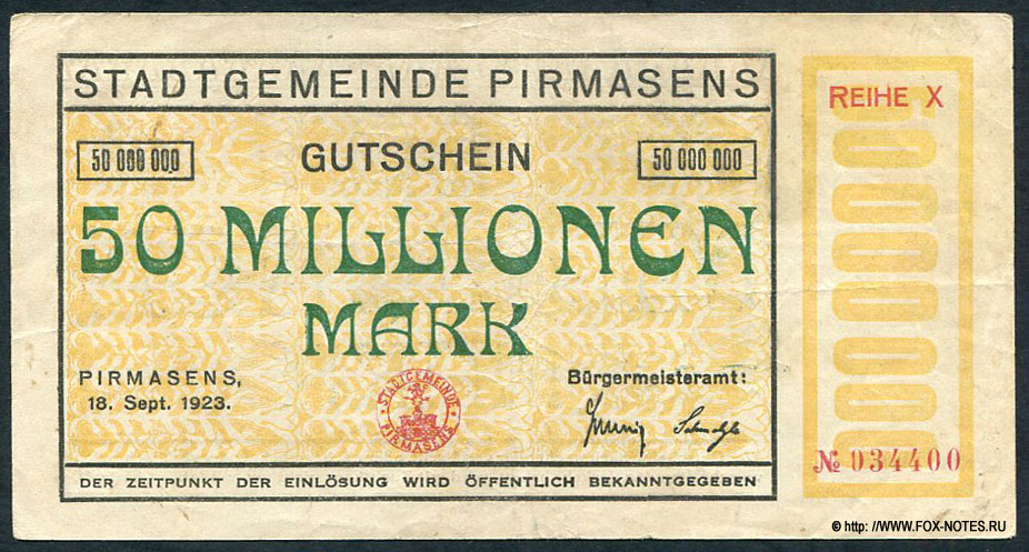 Pirmasens (Пирмазенс), Pfalz. Нотгельды Германии 1914 - 1924 гг.