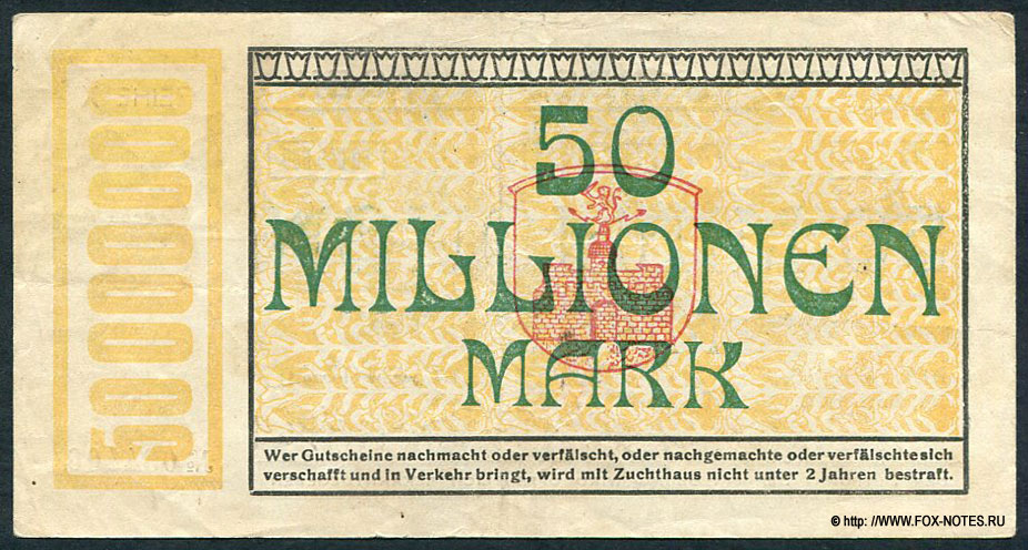 Notgeldschein der Stadtgemeinde Pirmasens. 10 Oktober 1923.